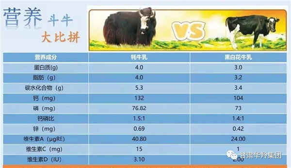 牦牛奶的氨基酸、鈣、維生素A含量分別比普通牛奶高15%、15%和6%。微量元素中,牦牛奶中所含的鐵是一般牛奶的9.8倍、鋅含量是一般牛奶的3倍、鈣含量是一般牛奶的1.13倍。牦牛奶中含有的免疫球蛋白是普通牛奶所缺少的,長期飲用會有助于提高人體免疫力,牦牛奶也因此被譽(yù)為"奶中極品"。