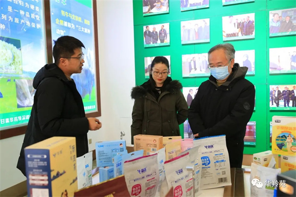 2022年1月11日甘肅日報社副總編蹇勇德一行在合作市委常委、宣傳部部長張小慧的陪同下蒞臨華羚公司采訪調研。