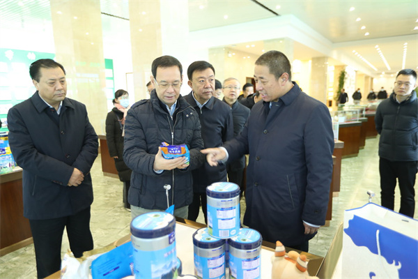 王賦書記一行在華羚實業集團董事長敏文祥的陪同下先后參觀了華羚集團榮譽大廳、產品展示廳、鄉村振興就業車間,對華羚集團在產業帶動、科技創新、鞏固脫貧攻堅成果等方面所做的工作給予了充分肯定,并指出,華羚集團要積極推動牦牛乳產業的高質量發展,通過產業的帶動,龍頭企業的作用,鞏固脫貧攻堅成果,助力鄉村振興戰略。