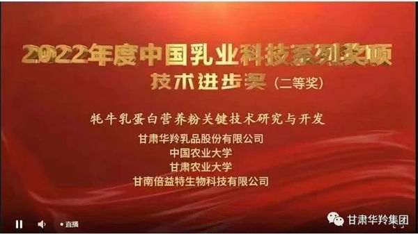 本次會議以“為了可持續的人類健康生活”為主題,全面總結2022年度乳制品行業運行情況及2023年度行業重點工作,深入探討中國乳制品行業高質量發展和科學技術方面取得的顯著成果。并對推進中國乳制品行業高質量發展及科技創新方面作出突出貢獻的企業頒發榮譽獎項,華羚乳品公司榮獲“2022年度中國乳業高質量發展企業獎”并以“牦牛乳蛋白營養粉關鍵技術研究與開發”榮獲2022年度中國乳業科技系列“技術進步二等獎”。