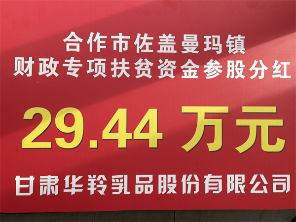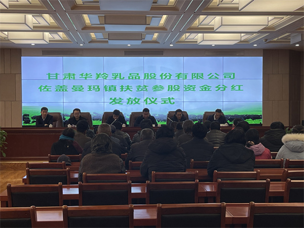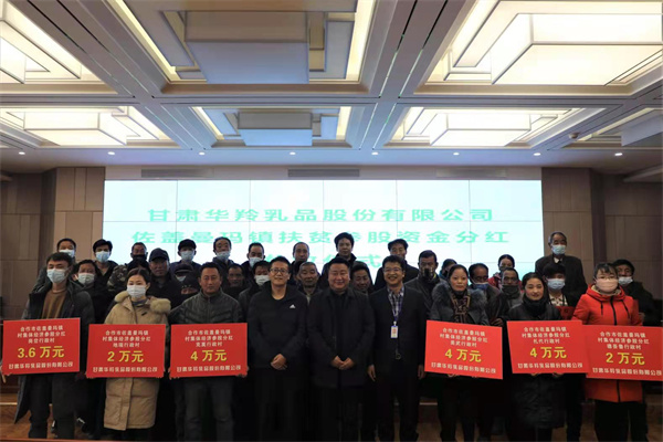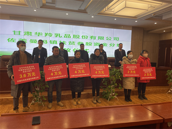 2022年3月1日,甘肅華羚乳品股份有限公司和佐蓋曼瑪鎮(zhèn)共同舉行2021年度農(nóng)牧村扶貧參股資金分紅發(fā)放儀式,華羚乳品公司為佐蓋曼瑪鎮(zhèn)農(nóng)牧民群眾發(fā)放扶貧參股資金49.04萬(wàn)元,農(nóng)牧民群眾領(lǐng)到分紅款后臉上洋溢著喜悅的笑容。