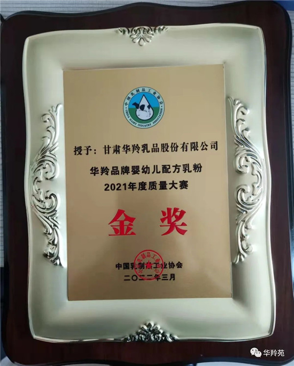 華羚乳品榮獲中國(guó)乳制品工業(yè)協(xié)會(huì)2021年度乳制品嬰幼兒配方奶粉質(zhì)量大賽金獎(jiǎng)!