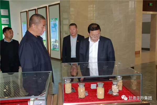 王峰行長一行在華羚實業集團董事長敏文祥的陪同下參觀了公司榮譽大廳、產品展示廳、鄉村振興就業車間、曲拉交易中心及華羚美仁大草原游客服務中心。對華羚公司在科技創新、產業帶動等方面所做的工作給予了充分的肯定和認可。